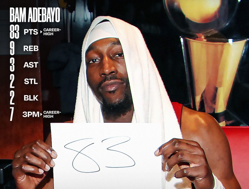 Locul doi în topul celor mai buni marcatori într-un singur meci este ocupat mai nou de Bam Adebayo, care, cu cele 83 de puncte ale sale împotriva lui Washington, a venit imediat în spatele celor 100 de puncte ale lui Wilt Chamberlain, dar înaintea celor 81 de puncte ale lui Kobe Bryant.